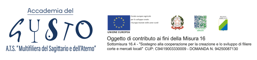 “OGGETTO DI CONTRIBUTO AI FINI DELLA MISURA 4.1.1 INTERVENTO 1 – P.S.R. REGIONE ABRUZZO 2014/2020 – P.I.F. MICROFILIERA – MULTIFILIERA DEL SAGITTARIO E DELL’ATERNO PESCARA” DOMANDA N. 94250230201 – C.U.P. N. C92H19000320007